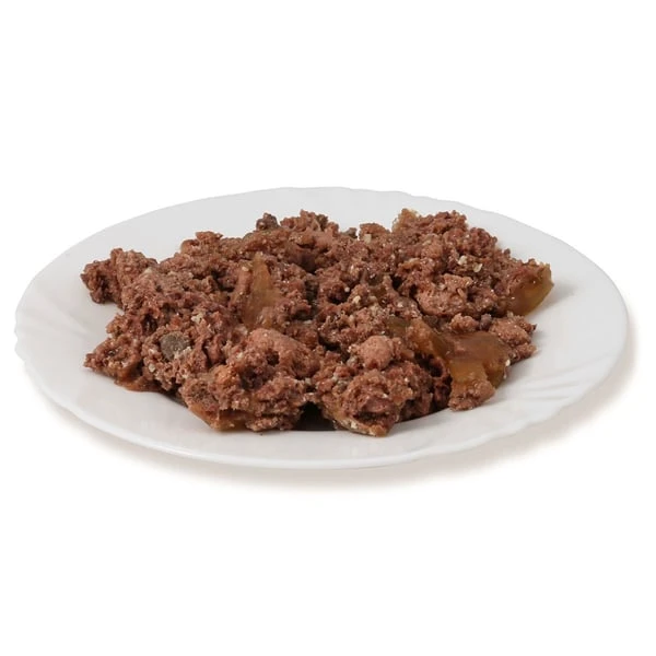 50 % Rind (Fleisch, Leber, Lunge, Herz, Niere, Euter), 15 % Putenherzen, Calciumcarbonat, Natriumchlorid.