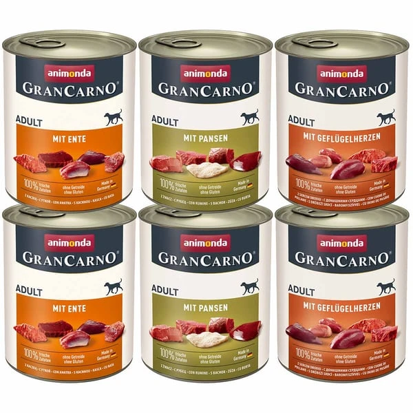 mit Ente: Protein 11,5 %, Fettgehalt 4,5 %, Rohfaser 0,3 %, Rohasche 2,2 %, Feuchtigkeit 79 % mit Geflügelherzen: Protein 11,5 %, Fettgehalt 4 %, Rohfaser 0,3 %, Rohasche 2,2 %, Feuchtigkeit 80 % mit Pansen: Protein 11 %, Fettgehalt 4,5 %, Rohfaser 0,3 %, Rohasche 2 %, Feuchtigkeit 80 %
