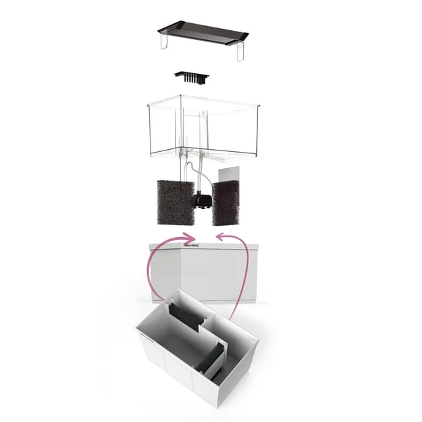 Das Armatus XS wird mit LED Beleuchtung und Pumpe geliefert. Die LED Beleuchtung kann mit 2 LichtkanĂ€len (weiĂ und blau) inkl. Dimmung individuell angepasst werden. Die integrierte Förderpumpe dient ebenfalls als Strömungspumpe und sorgt fĂŒr ausreichende WasserumwĂ€lzung. Ein eingebauter Ablaufschacht stellt einen zuverlĂ€ssigen OberflĂ€chenabzug sicher.