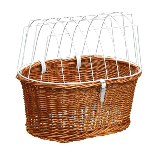 Der Aumüller Fahrrad-Tierkorb ist komplett ausgestattet mit waschbarer Einlage und Sicherheitsdrahtkuppel. Mit dem durchdachten Befestigungssystem am Gepäckträger wird der Fahrradkorb für Tiere schnell und sicher befestigt und kann bis zu 15 kg insgesamt tragen. Der nächsten Radtour mit dem Vierbeiner steht somit nichts mehr im Wege! Der Korb ist in reiner Handarbeit produziert und aus Weide gefertigt.
