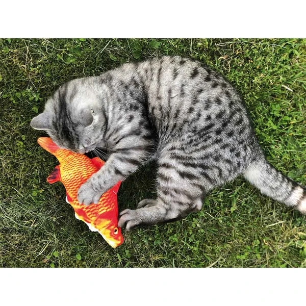 Die Zappelfische von Aumüller wecken den natürlichen Jagdtrieb und sorgen für Beschäftigung. Eine fotorealistische Nachbildung aus schmuseweichem und robustem Plüsch. Der Fisch hat einen integrierten Akku mit USB-Anschluss und Ein-/Ausschalter. Der Bewegungssensor startet erst bei Berührung. Gefüllt mit Katzenminze und Silver Vine.