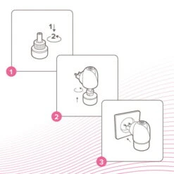 Verwende das Gerät nur in Verbindung mit einer 230V Steckdose. Verwende keine Mehrfachsteckdose, Verlängerungskabel, Adapter oder Konverter. Vor Gebrauch beiliegende Gebrauchsanweisung lesen und beachten. Ein 48ml Flakon reicht bis zu 30 Tage und für 70m².