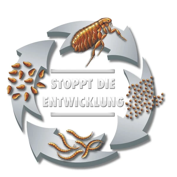 - Stoppt den Entwicklungszyklus von Flöhen