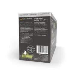 Lachs 70 %, Lachssud 28,8 %, Mineralstoffe 1 %, Hanföl 0,2 %