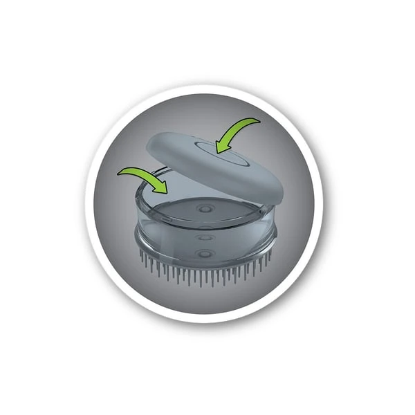 - Spenderknopf zum Auftragen des Produkts auf dem Fell.