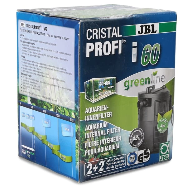 - Mit Ihrer eleganten Eckform passen sich JBL CristalProfi Innenfilter unauffÀllig in jedes Aquarium ein.