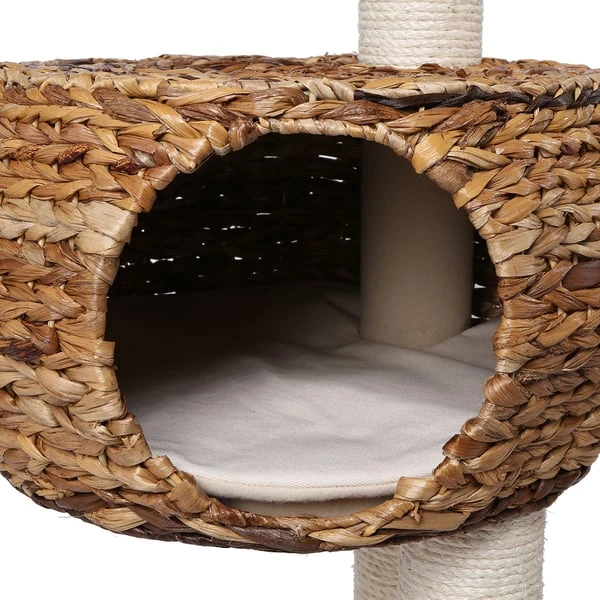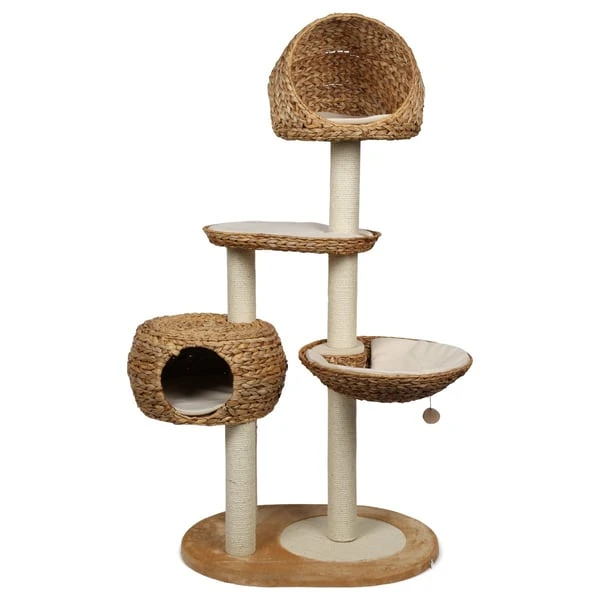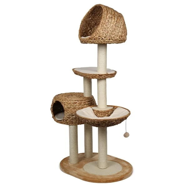 Der PlĂŒschanteil des Kratzbaums ist samtig weich. Mit dem widerstandsfĂ€higen Sisal trotzt der Kratzbaum auch ausdauerndem Kratzen. BananenblĂ€tter sind natĂŒrliche Materialien und verleihen dem Kratzbaum eine schöne Optik. Er Bietet auch eine RĂŒckzugsmöglichkeit fĂŒr das Wohlbefinden sensibler Katzen. Auch mehrere Katzen können sich dank der groĂen StabilitĂ€t des Kratzbaums austoben. Nicht nur ein toller Ort um die Krallen auf Vordermann zu bringen, sondern auch zum Klettern und Spielen. Deine Katze wird lange SpaĂ an dem Kratzbaum haben, denn er ist besonders robust und strapazierfĂ€hig. Der Kratzbaum ist mit einer Höhle zum RĂŒckzug, mehreren Etagen zum Klettern, Spielelementen, einer bequemen Liegemulde ausgestattet. Schenke deiner Katze eine Portion KratzspaĂ – mit dem Kratzbaum von Karlie!