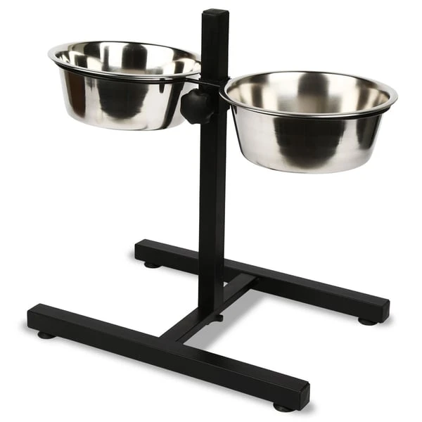 Die Futterbar von Kerbl besteht aus zwei gegenüberliegenden Edelstahlnäpfen, die stufenlos auch einzeln höhenverstellbar sind, was Ihnen die Möglichkeit bietet, zwei Hunde gleichzeitig zu versorgen. . Zusätzlich sind die Näpfe durch eine Napffixierung befestigt. Die Futterbar hat zusätzlich noch höhenverstellbare Kunststofffüße, die Ihrem Liebling noch mehr individuellen Komfort bieten.