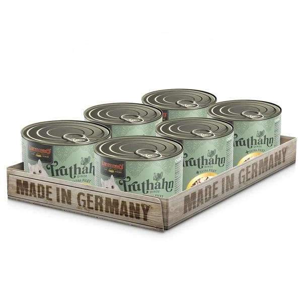 56% Truthahnfleisch, -leber, -herz, -muskelmagen; 28,8% FleischbrĂŒhe; 14% Truthahnfilet; 0,5% Mineralstoffe; 0,5% Eierschalen, getrocknet; 0,2% Lachsöl