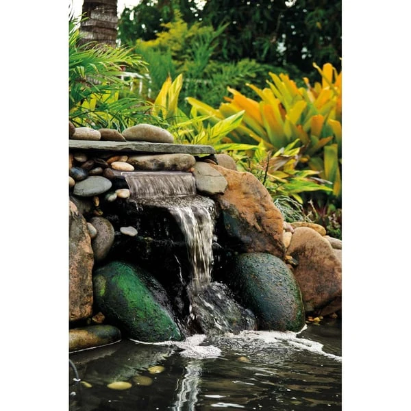 PondoFall LED – der Auslauf für Bachläufe und Wasserfälle mit LED für den unkomplizierten Einbau. Die beleuchtete Auslauflippe mit 24 warmweißen LEDs. Inkl. Stufenschlauchtülle (19/25 mm) zur Montage an Rück- oder Unterseite. PondoFall LED besteht aus haltbarem, wetterfesten und UV-beständigem Kunststoff und eignet sich für Wasserdurchflussmengen von 2000 l/h bis 6000 l/h (Liter pro Stunde). Inklusive 12 V – Sicherheitstrafo und 2 m + 8 m Kabellänge. Breite: 395 mm