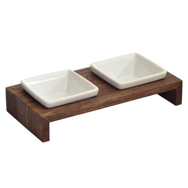 Die Kombination aus Holz & Keramik macht auch optisch einen tollen Eindruck. DarĂŒber hinaus können sie die Replus-NĂ€pfe ganz bequem in der SpĂŒlmaschine reinigen lassen. Das Holzgestell, das mit Pu-Lack versiegelt und somit wasserabweisend ist, sollte hin und wieder mit einem Lappen gereinigt werden. Wahlweise erhalten Sie die Replus Futterstation Meshidai Doppelnapf Walnuss in den Varianten XS, S, M und L.