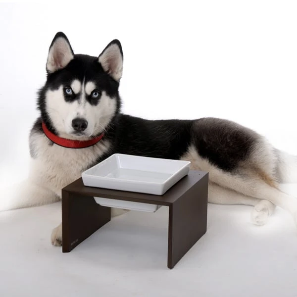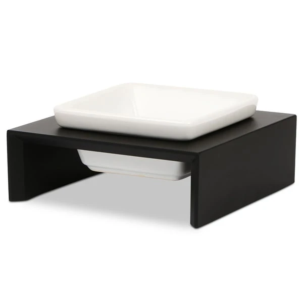 Ästhetische und kontrastreiche Kombination aus Holz und Porzellan. Eine Premium-Futterstation, die sich perfekt in Ihr stilvolles Wohnambiente einfügt.