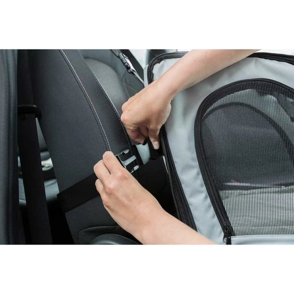 Der Autositz von Trixie kann problemlos auf dem Vorder- oder Rücksitz genutzt werden. Er lässt sich bequem von vorne oder seitlich öffnen und schließen. Für die notwendige Stabilität sorgen die Befestigungsgurte, die zur Fixierung des Sitzes am Fahrzeug dienen. Zusätzlich steht eine Gurtdurchführung zum Anschnallen des Hundes zur Verfügung. Das herausnehmbare Kissen mit Schaumstoff-Füllung kann per Handwasche gereinigt werden. Wird der Autositz mal nicht benötigt, lässt er sich einfach zusammenklappen und platzsparend verstauen