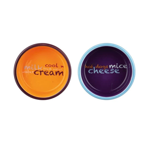 Ein hĂŒbsches Set fĂŒr kleine Feinschmecker! Aus diesen beiden liebevoll gestalteten NĂ€pfen frisst und trinkt es sich gleich nochmal so gut. Wegen des Metallhalters mit den GummifĂŒĂen steht alles sicher an seinem Platz.