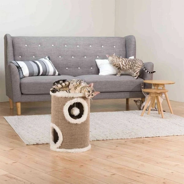 Besonders kuschelig ist die Kratztonne mit dem eingearbeiteten Plüsch. Mit dem Sisal ist die Kratztonne bestens für die Krallen deiner Katze gewappnet. Polyester ist sehr pflegeleicht und macht sich deswegen an der Kratztonne gut. Hier kann sich deine Katze nicht nur austoben, sondern auch zum Ausspannen zurückziehen. Auch großen und schweren Katzen hält die Kratztonne dank der stabilen Konstruktion stand. Besonders Kitten und junge Kätzchen werden mit der Kratztonne viel Spaß haben. Hier kann deine Katze nicht nur die Krallen wetzen, auch für viel Kletter-und Spielspaß ist gesorgt. Die Kratztonne ist besonders platzsparend auch in kleinen Räumen. Mit der Kratztonne von Trixie lässt du es deiner Katze gut gehen.
