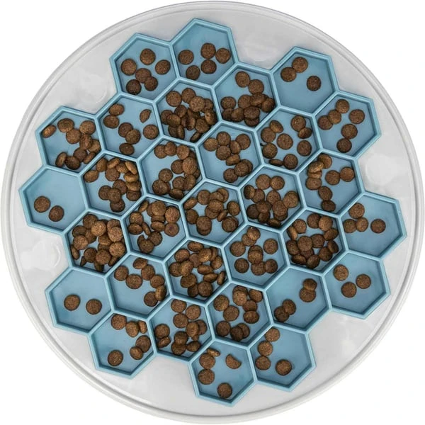 Schlingt dein Hund schnell und unkontrolliert sein Essen hinunter? Dann ist die Trixie Slow Feeding Platte Hive die ideale Lösung. Die einzigartige Form der Platte begĂŒnstigt eine lĂ€ngere BeschĂ€ftigung deines Hundes mit seinem Futter und verhindert somit das Schlingen. Das weiche Material der Platte schont zudem Maul und ZĂ€hne. Die Platte eignet sich fĂŒr alle Futtersorten und ist rutschfest sowie spĂŒlmaschinengeeignet.