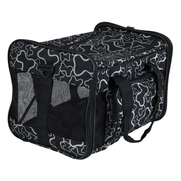 Die Transporttasche aus Polyester lĂ€sst sich gleichzeitig von drei Seiten öffnen: oben, vorne und hinten. An den Enden befinden sich jeweils Taschen, die zusĂ€tzlichen Stauraum schaffen. FĂŒr Tragekomfort sorgt der abnehmbare und stufenlos verstellbare Schulterriemen. NetzeinsĂ€tze an den Seiten sorgen fĂŒr eine angenehme Luftzirkulation und die integrierte Kurzleine verhindert das Herausspringen. Die Bodenplatte ist mit PlĂŒsch bezogen und herausnehmbar.