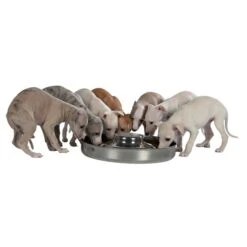Der Welpennapf von Trixie aus Edelstahl bietet durch seinen groĂen Durchmesser auch fĂŒr mehrere Welpen genug Platz zum Fressen.